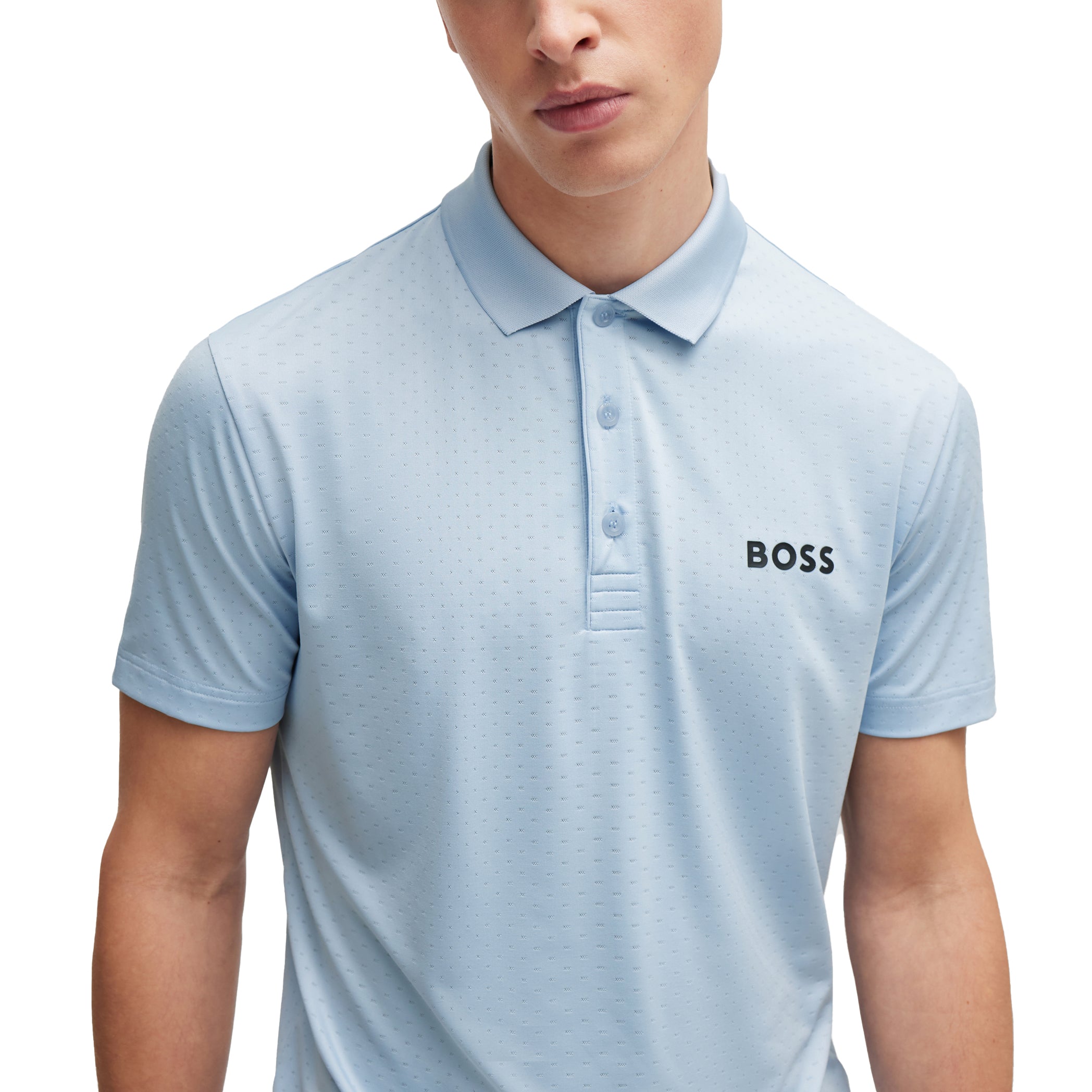 A high-performance polo shirt by BOSS Menswear engineered in quick-drying degradé jacquard fabric with moisture control and four-way stretch. For our BETTER BOSS products, we always use at least 60% better raw materials. This product is made from at least 60% recycled polyester. Recycled polyester is an artificial fibre made from oil-based waste such as old PET bottles.