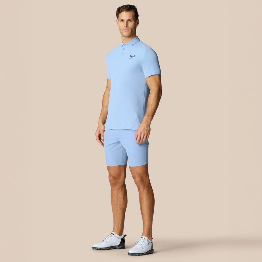 -High-Stretch, Lightweight Fabric: Offers maximum flexibility and breathability, allowing for unrestricted movement during every swing. -Aertek Technology: Enhances sweat-wicking to keep you dry and comfortable, even on the hottest days. -Drop-Back Hem with Hem Seam Opening: Provides additional coverage and ensures you stay comfortable during dynamic movements. -Self-Fabric Pointed Collar with Stand: A modern and stylish design that adds a clean, sharp look to your golf outfit. -Set-In Short Sleeves: Offers a comfortable fit and a stylish finish, perfect for warmer weather. -Side Splits: Enhance range of motion, allowing for full flexibility during your swing. -Aertek Tertiary Branding at Lower Left Back: Subtle branding that highlights the quality and performance of the top. -Castore Branding at Left Chest and Upper Back: Premium branding that reflects the top’s high-performance and stylish design.