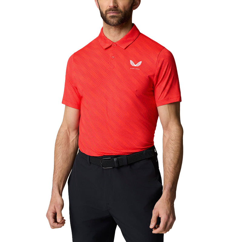 Castore Club Golf Ball Printed Polo Golf Shirt - Poppy Red/White