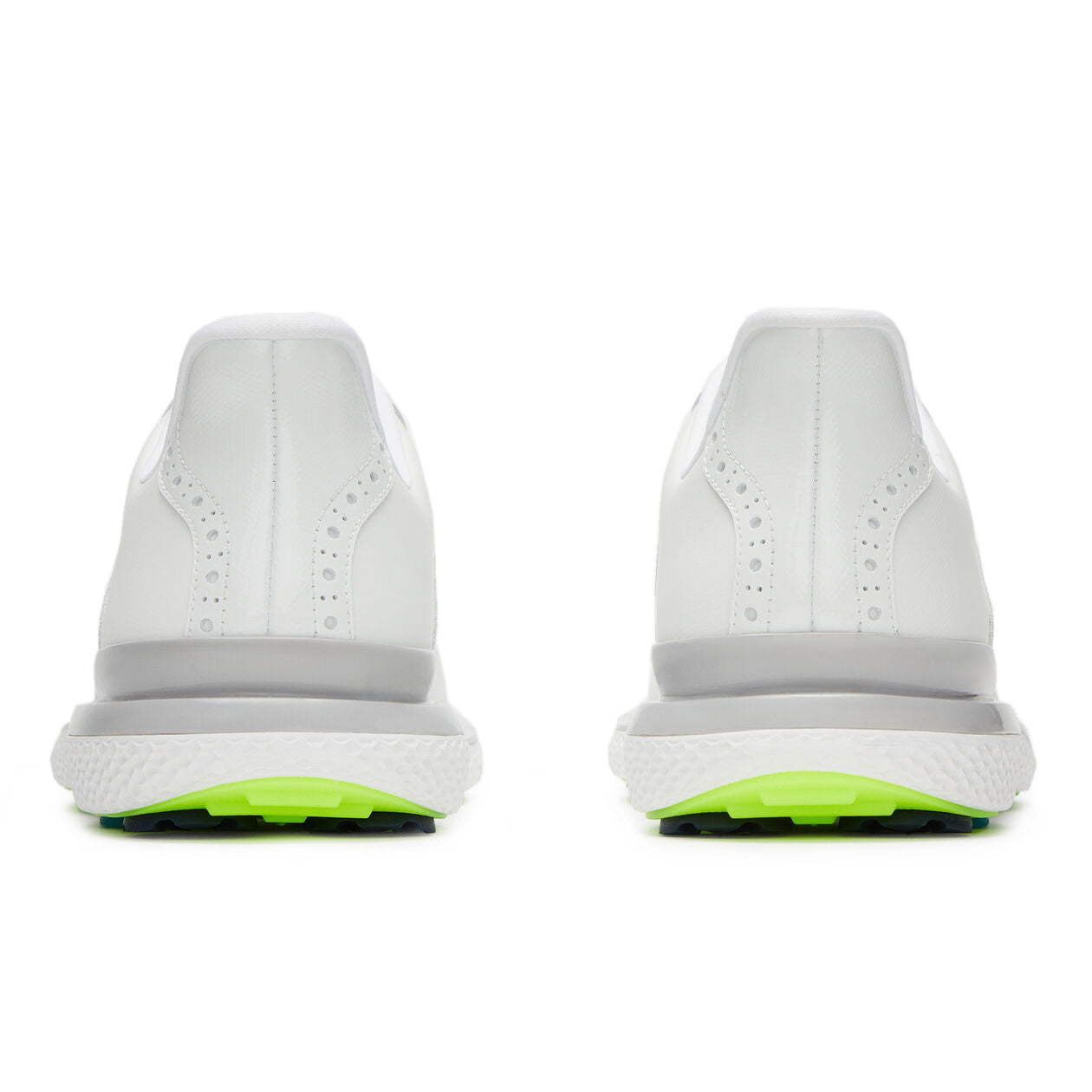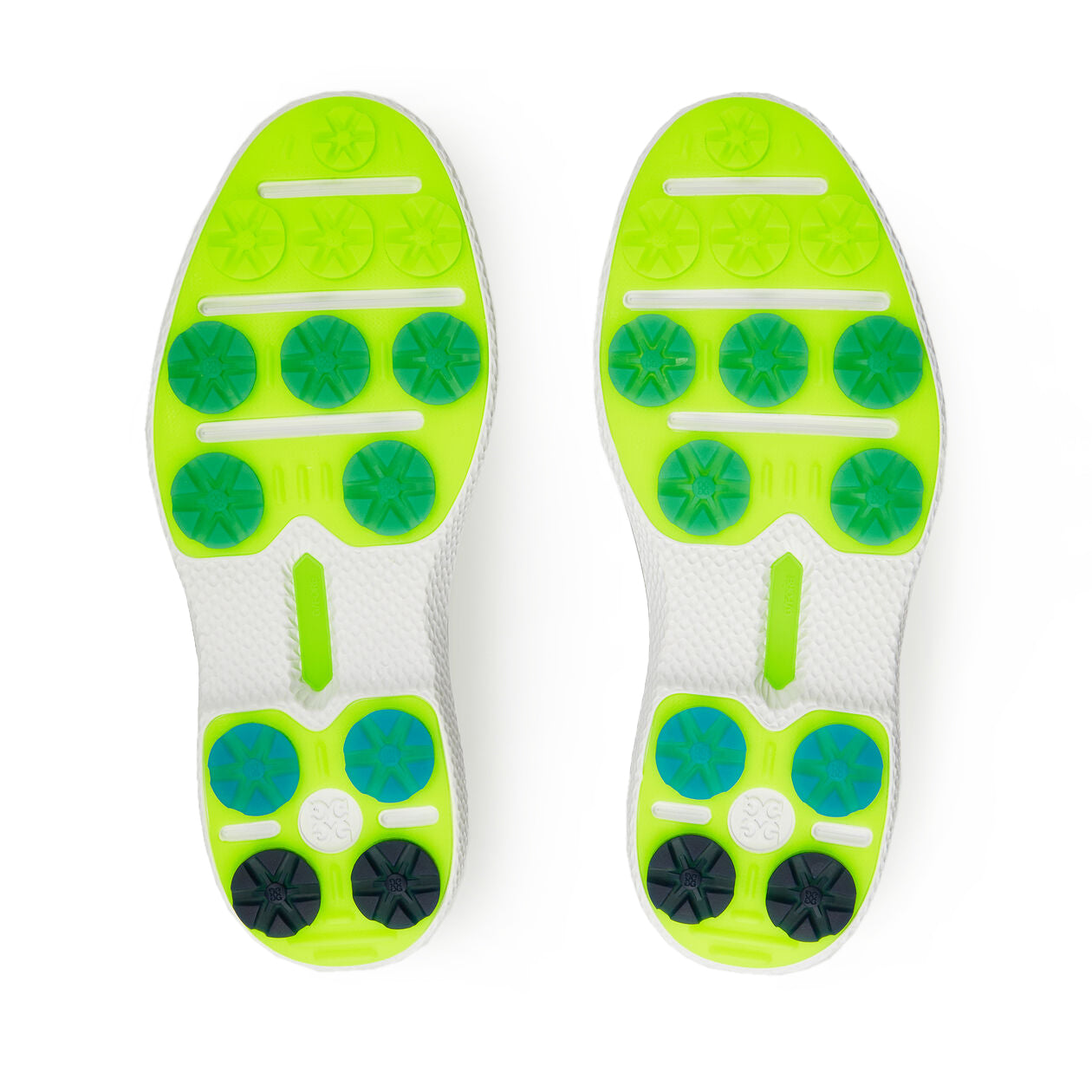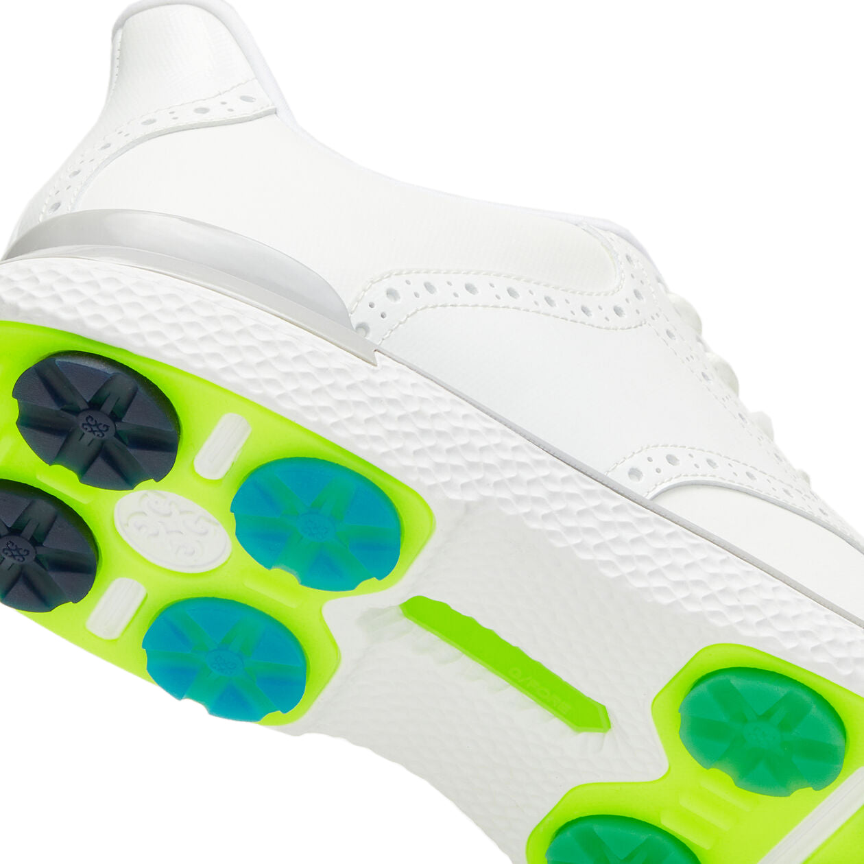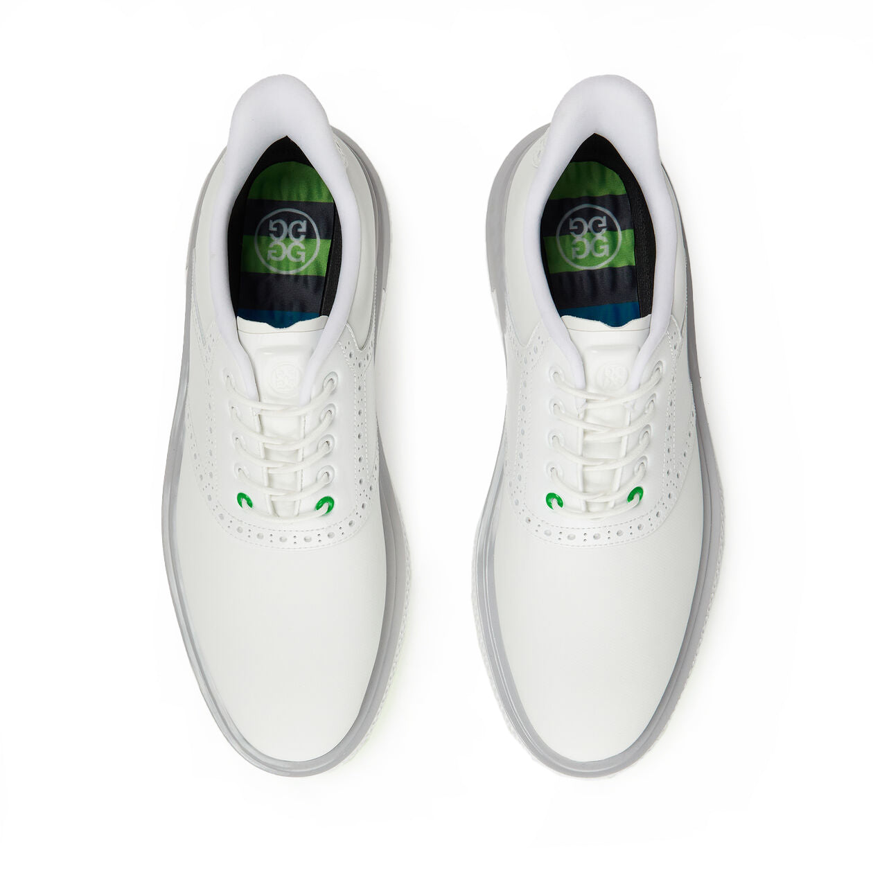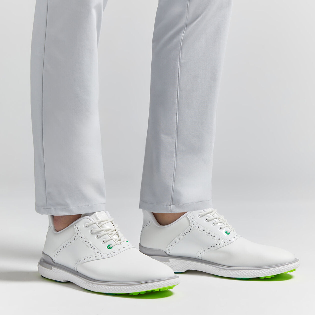 A COMBINATION OF THE MG4+'S MODERN PERFORMANCE DETAILS WITH THE GALLIVANTER'S CLASSIC SILHOUETTE. EQUIPPED WITH AN AUXETIC LATTICE MIDSOLE, INTEGRATED RUBBER CLEAT SYSTEM, HEEL CAP, CUSHIONED INTERIOR, AND ODOR INHIBITING MESH LINING, ITS ULTRA LIGHTWEIGHT AND COMFORTABLE DESIGN COMES WITH FULLY LOCKED-IN STABILITY FOR EVERY SWING. THE WATERPROOF T.P.U. UPPER WON'T LET THE WEATHER STOP YOU EITHER.