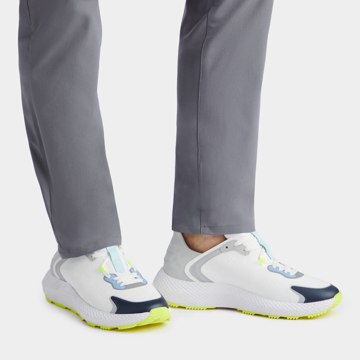THE MEN'S MG4X2 KNIT HYBRID GOLF CROSS TRAINER IS A MULTI-FUNCTIONAL SHOE THAT TAKES YOU EASILY FROM THE STREET TO THE COURSE. FEATURING A ONE-PIECE ENGINEERED WATER REPELLENT G/DRY KNIT UPPER FOR UNBEATABLE COMFORT, IT BOASTS AN AUXETIC LATTICE MIDSOLE FOR ALL-DAY SUPPORT, A SAWTOOTH TRACTION PATTERN FOR GRIP, AND G/FORE'S STAPLE TRIPLE-DENSITY FOAM CUSHION FOOTBED FOR A MASSAGE WITH EVERY STEP.