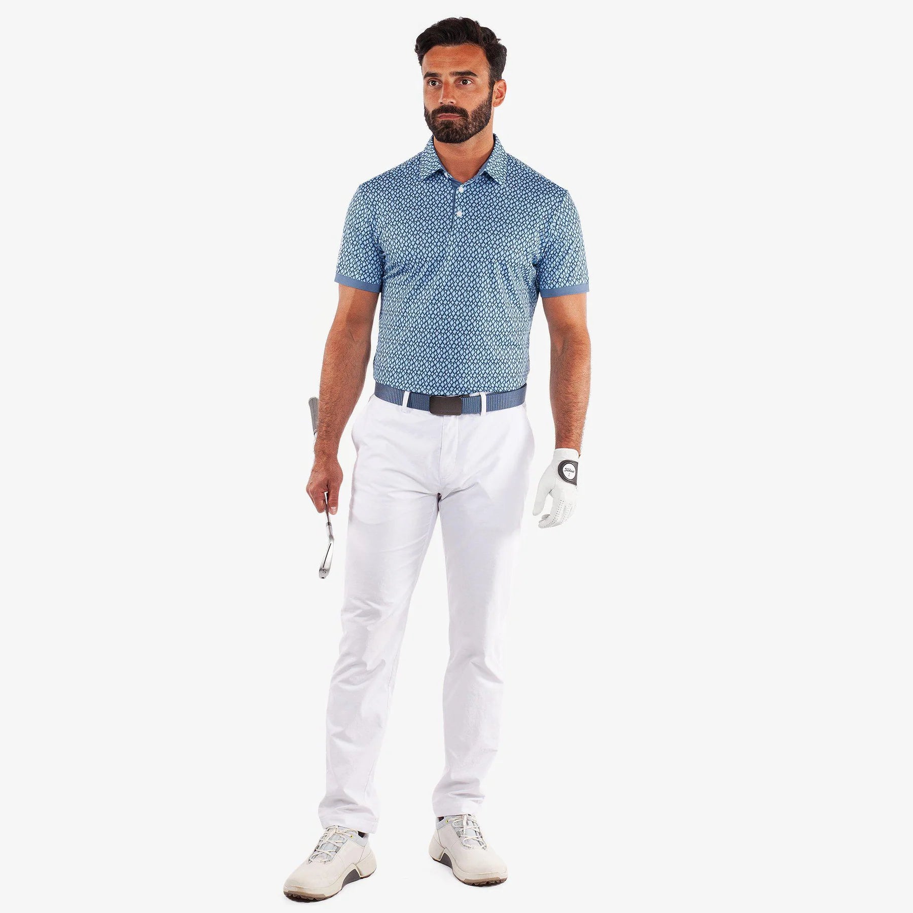 Eye-Catching All-Over Print: A unique curved argyle-inspired pattern fused with floral and fluid shapes for a bold statement on and off the course.