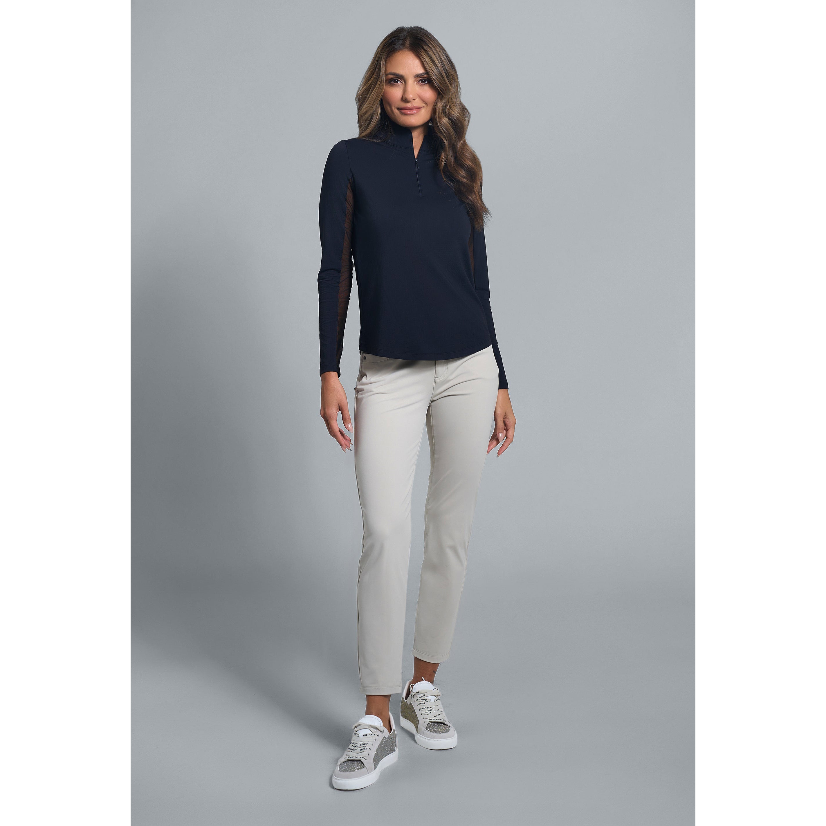 IBKUL Women's Solid Long Sleeve Zip Mock Neck Shirt - Black