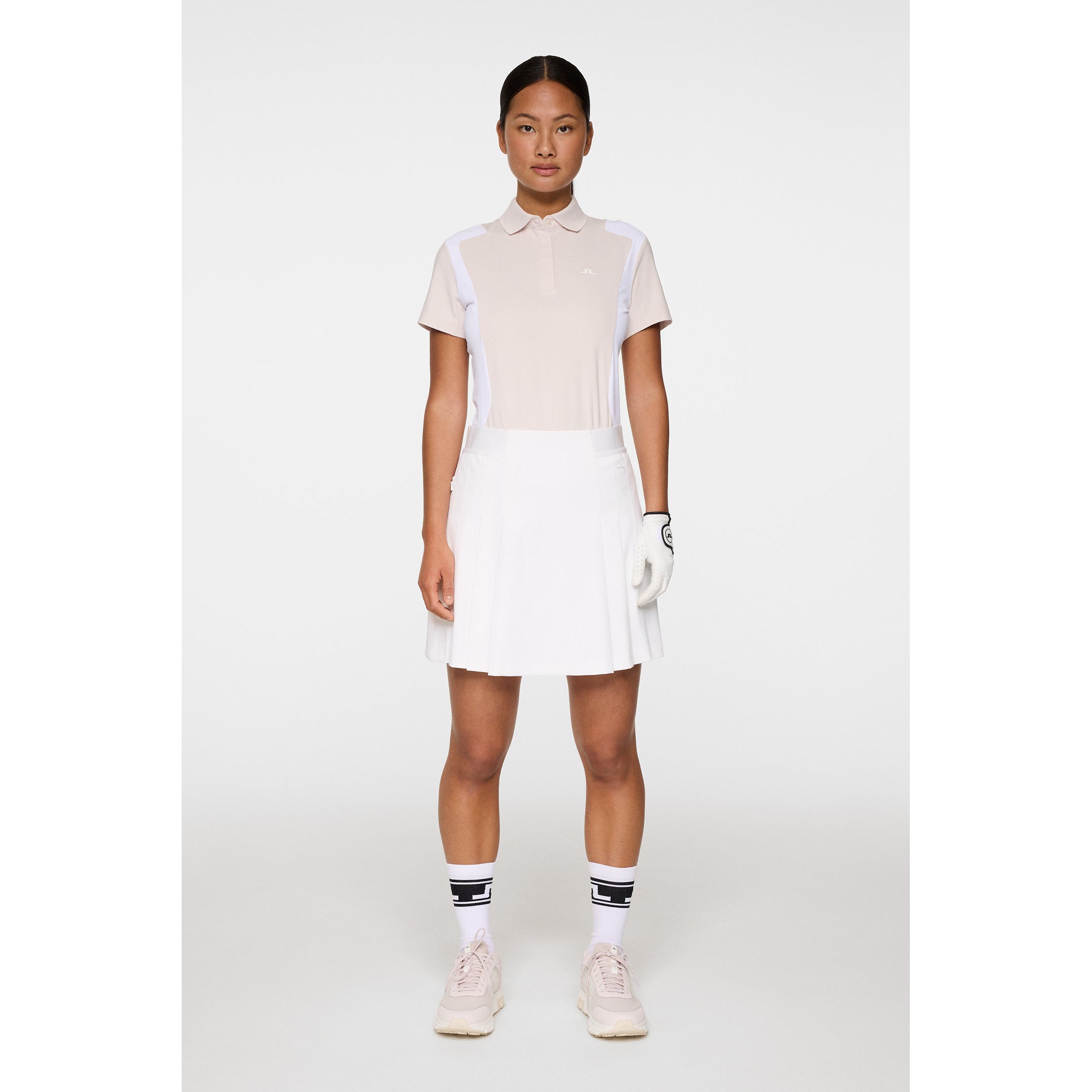 Fast-Drying Fabric: Helps manage heat and moisture to keep you cool and dry throughout the day. Stretch Construction: Delivers flexible comfort that moves with you during every activity. Breathable Design: Promotes airflow to support comfort in warm or active conditions. Water-Repellent Finish: Provides lightweight protection when weather is unpredictable. Lightweight Feel: Offers easy, comfortable wear without added bulk. Elastic Waistband: Ensures a secure, smooth fit that adapts to your shape. Integrated Inner Shorts: Delivers built-in coverage for confident movement. Bridge Logo Detail: Adds a clean and recognizable J.Lindeberg finish. Side Pleats: Creates natural movement and adds a feminine silhouette. Concealed Side Pockets: Offers sleek, functional storage without interrupting the look.