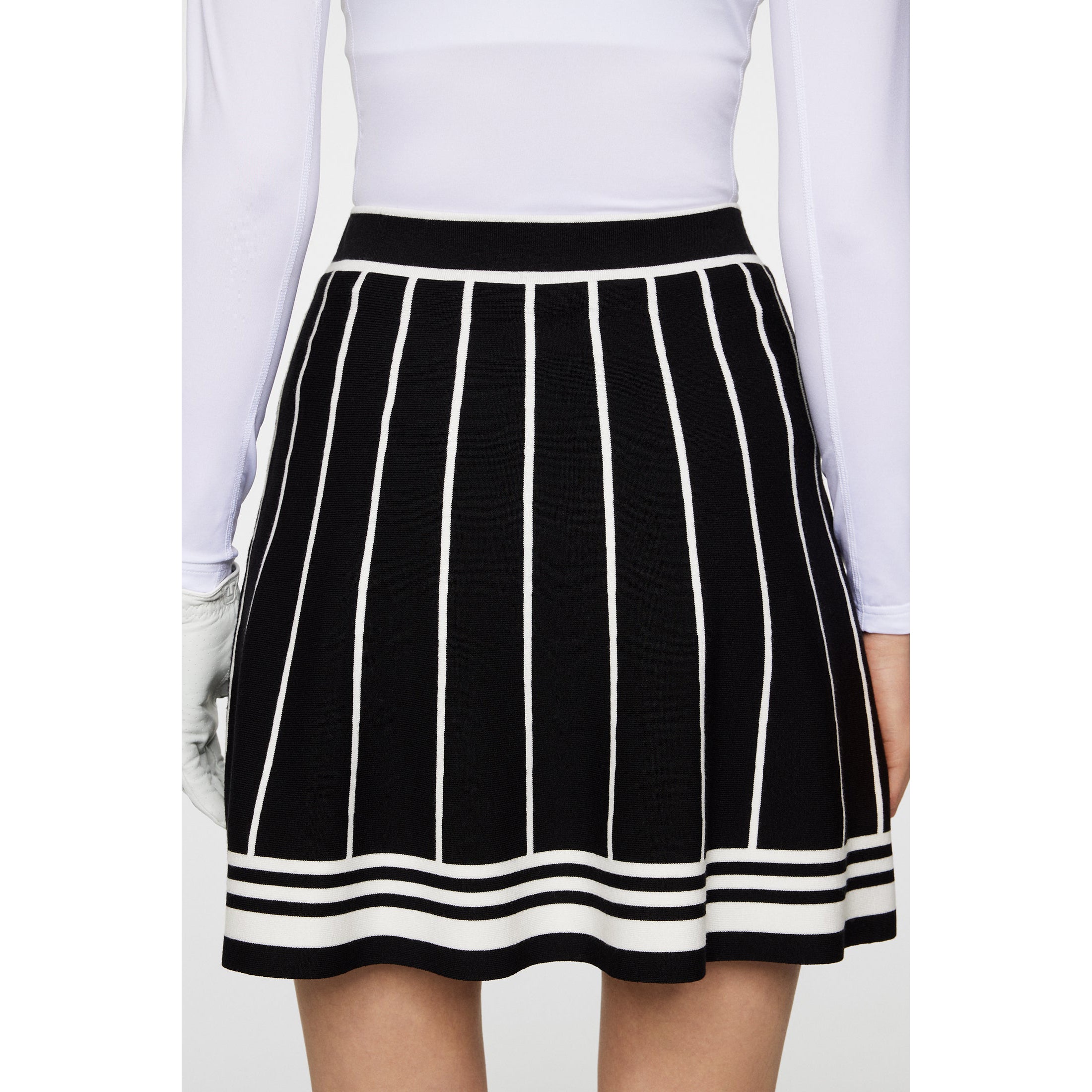 The J.Lindeberg Women's Irma Knitted Golf Skirt offers a combination of style, comfort, and performance. With its stretchy, lightweight fabric and built-in inner shorts, this skirt is perfect for active days on the course. The modern striped design, fast-drying fabric, and signature Bridge logo make it a stylish and functional choice for golfers who appreciate both form and function.
