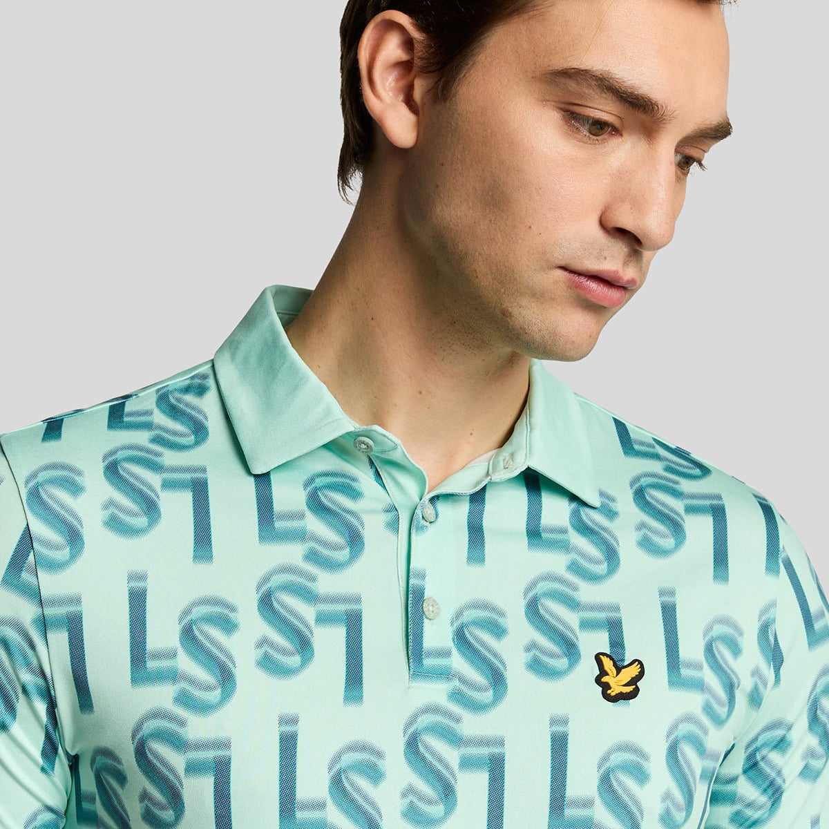 Lyle & Scott LS Monogram Printed Golf Polo Shirt - Shoreline