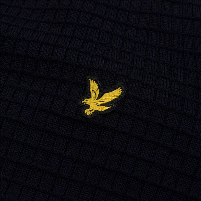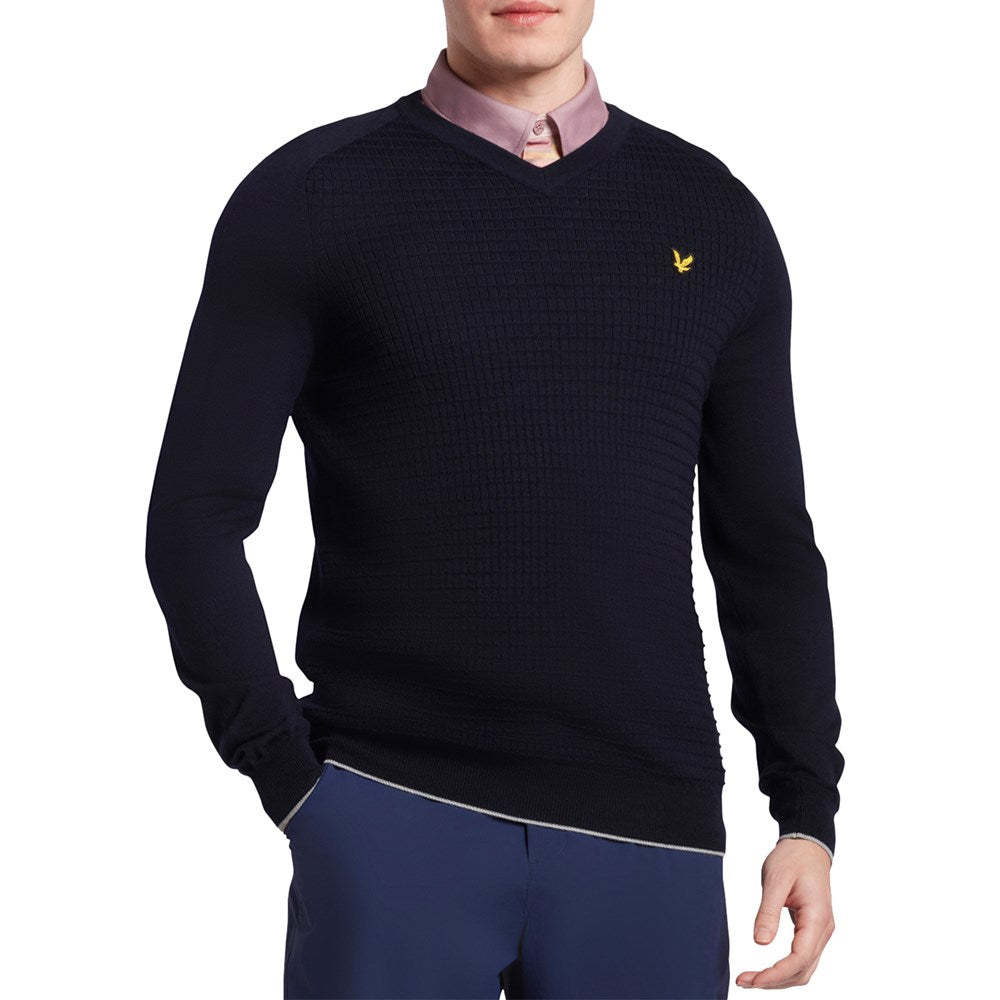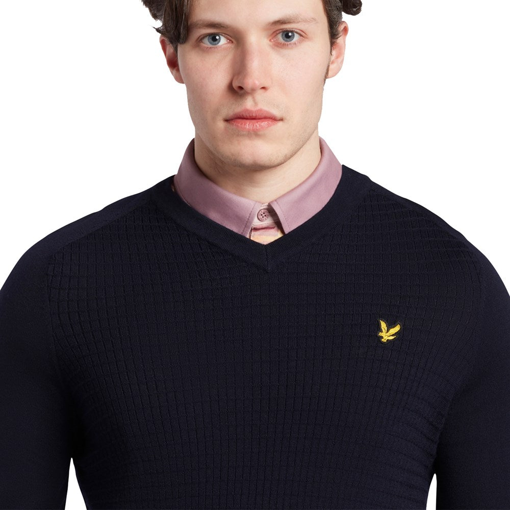 Lyle & Scott Merino Grid Texture V Neck Jumper - Navy