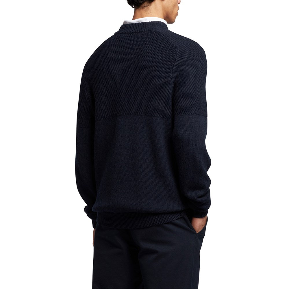 Lyle & Scott Tonal Eagle Seed Stitch Mock Neck Pullover - Dark Navy