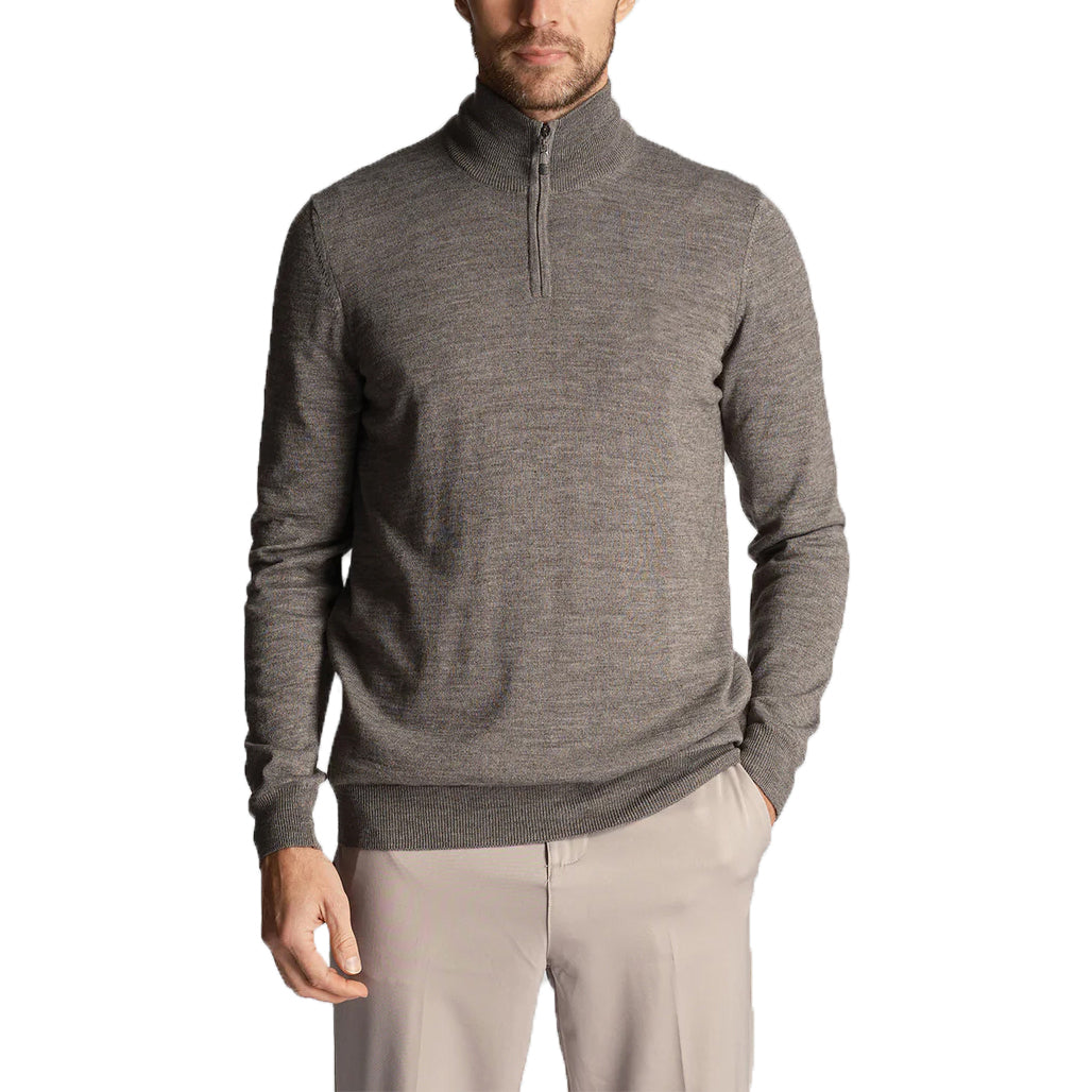 Lyle & Scott Tonal Eagle Merino Blend 1/4 Zip Knit - Mid Grey Marl