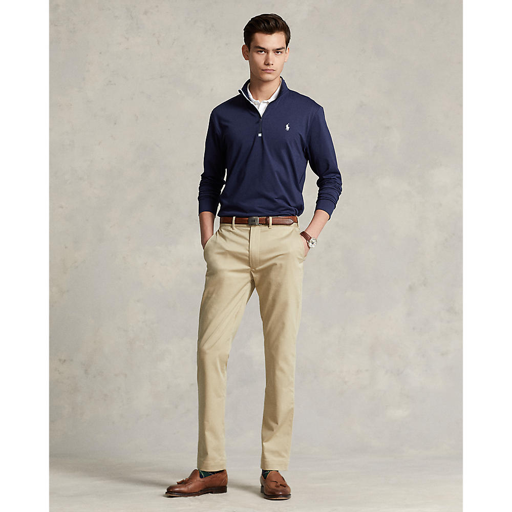 This quarter-zip pullover is developed with moisture-wicking properties to help keep you cool and comfortable on the course. Its peached stretch jersey is crafted with recycled polyester, reducing Ralph Lauren’s dependence on virgin petroleum–based material.