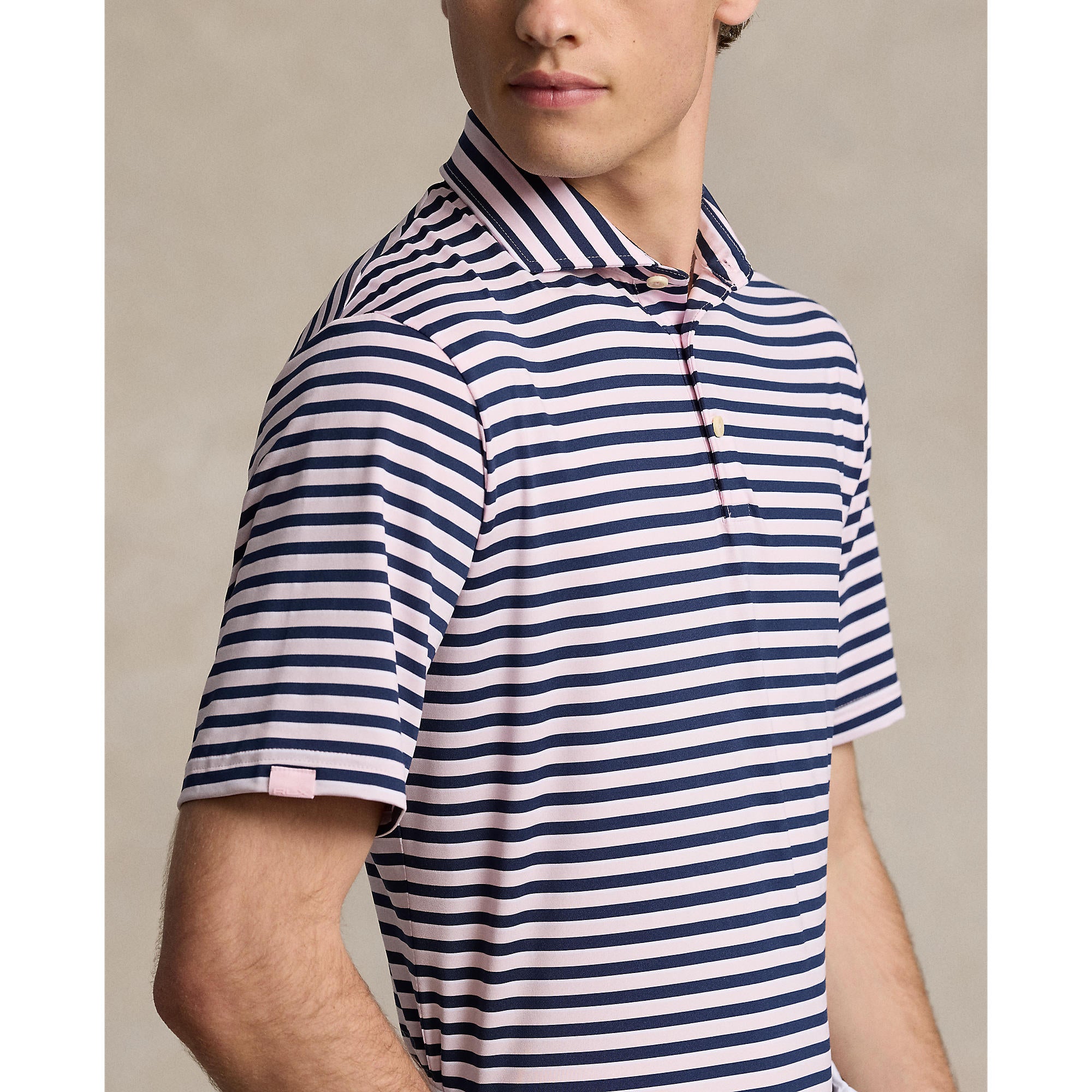 RLX Ralph Lauren Stripe Lightweight Airflow Golf Polo Shirt - Bath Pink Multi
