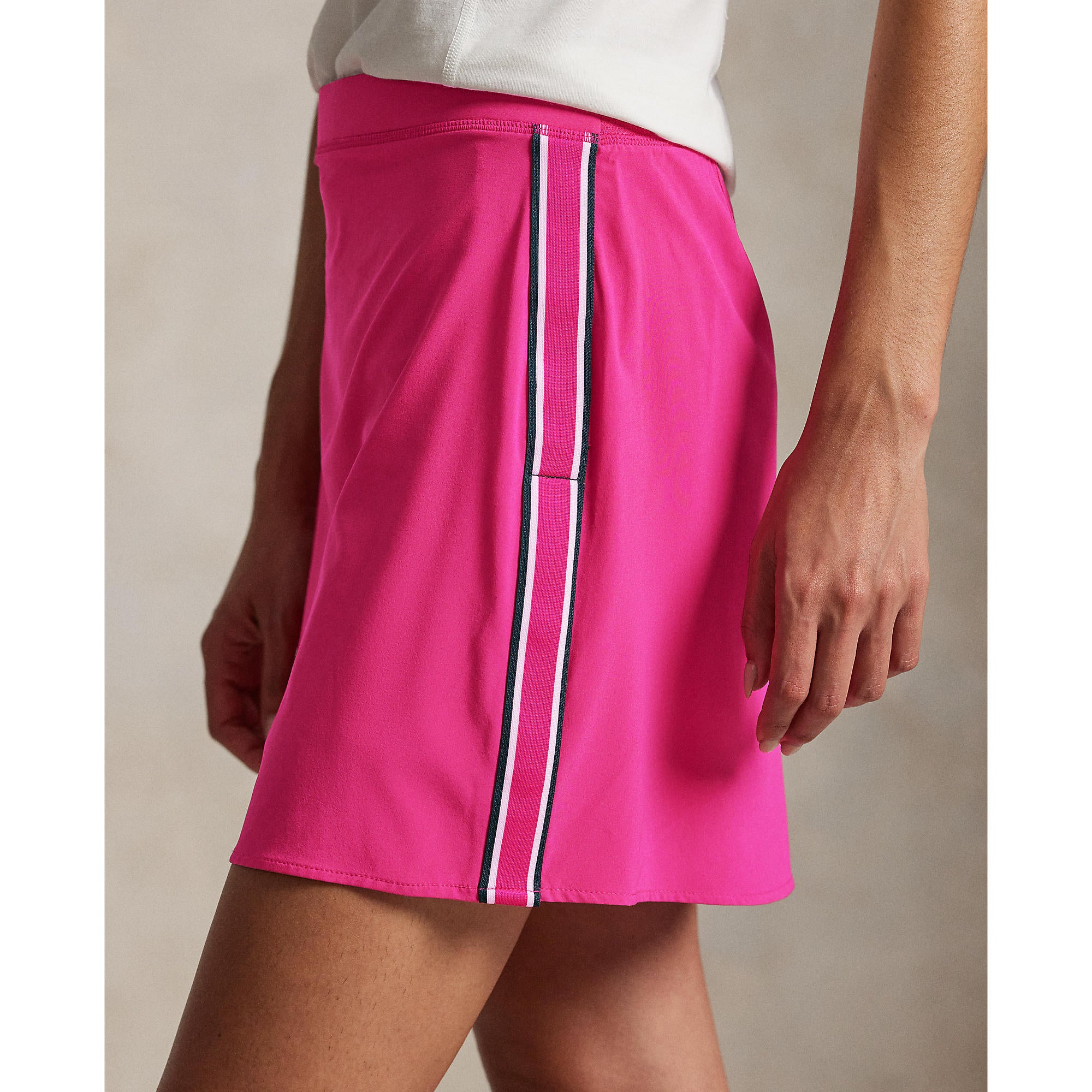 Sporty, Streamlined, and Built for Movement The RLX Ralph Lauren Women’s Stretch Side-Stripe Golf Skort delivers elevated performance with a clean, athletic aesthetic. Designed from refined stretch fabric with water-repellent properties, this skort keeps you comfortable, confident, and mobile through every swing. Sporty contrast striping enhances the sides for a dynamic look that transitions effortlessly from course to clubhouse.
