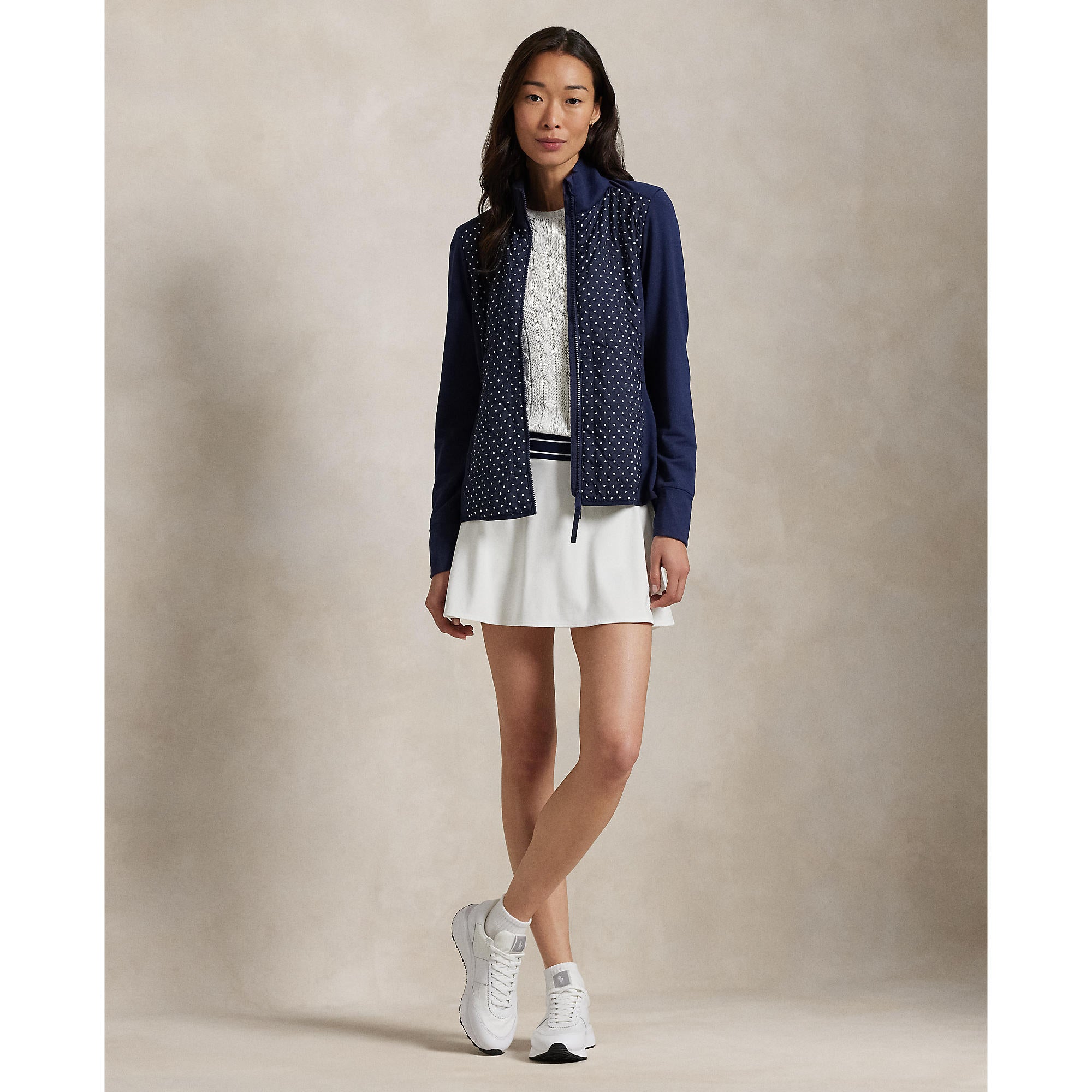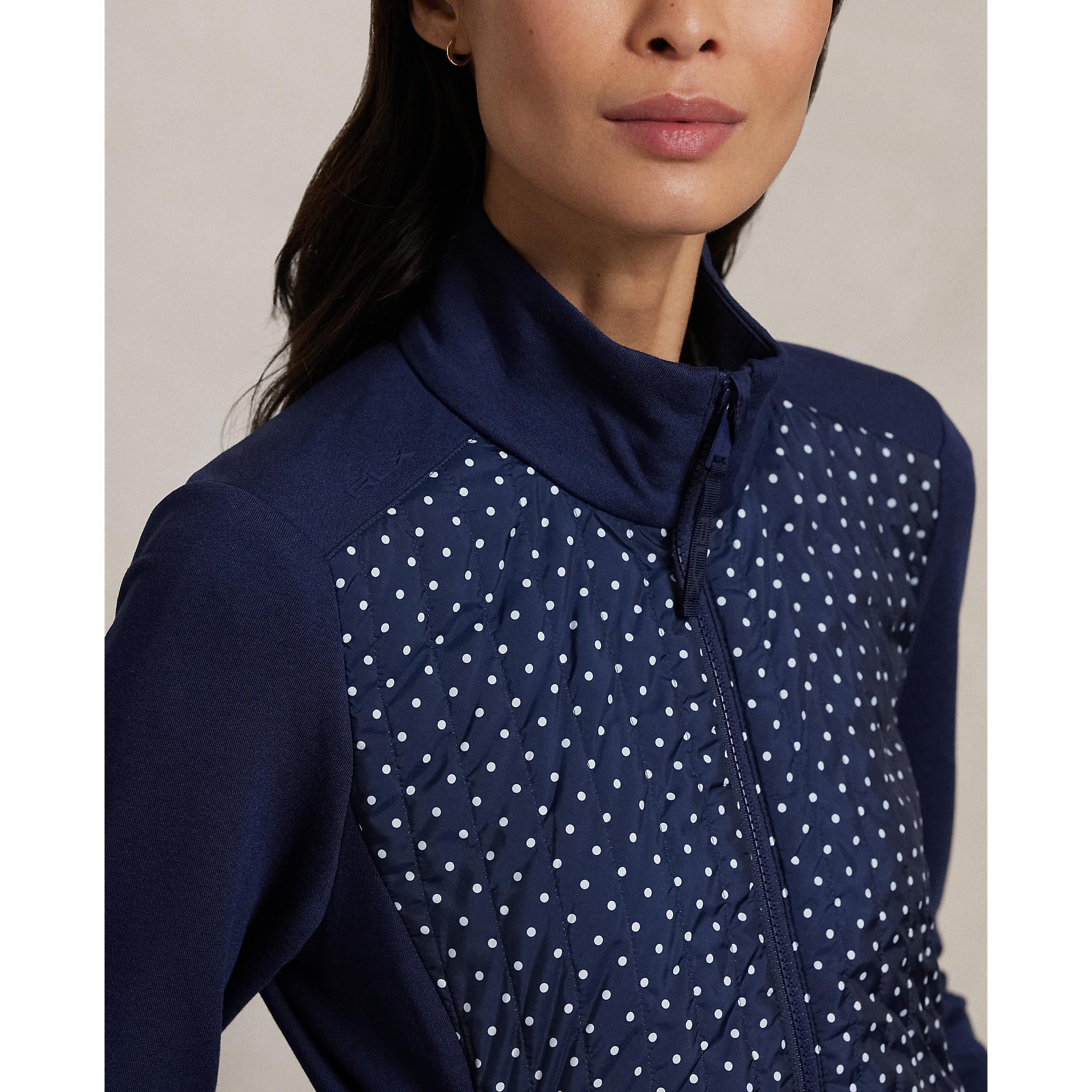 RLX Ralph Lauren Women's Cool Wool Hybrid Performance Full-Zip Jacket - Refined Navy Polka Dot