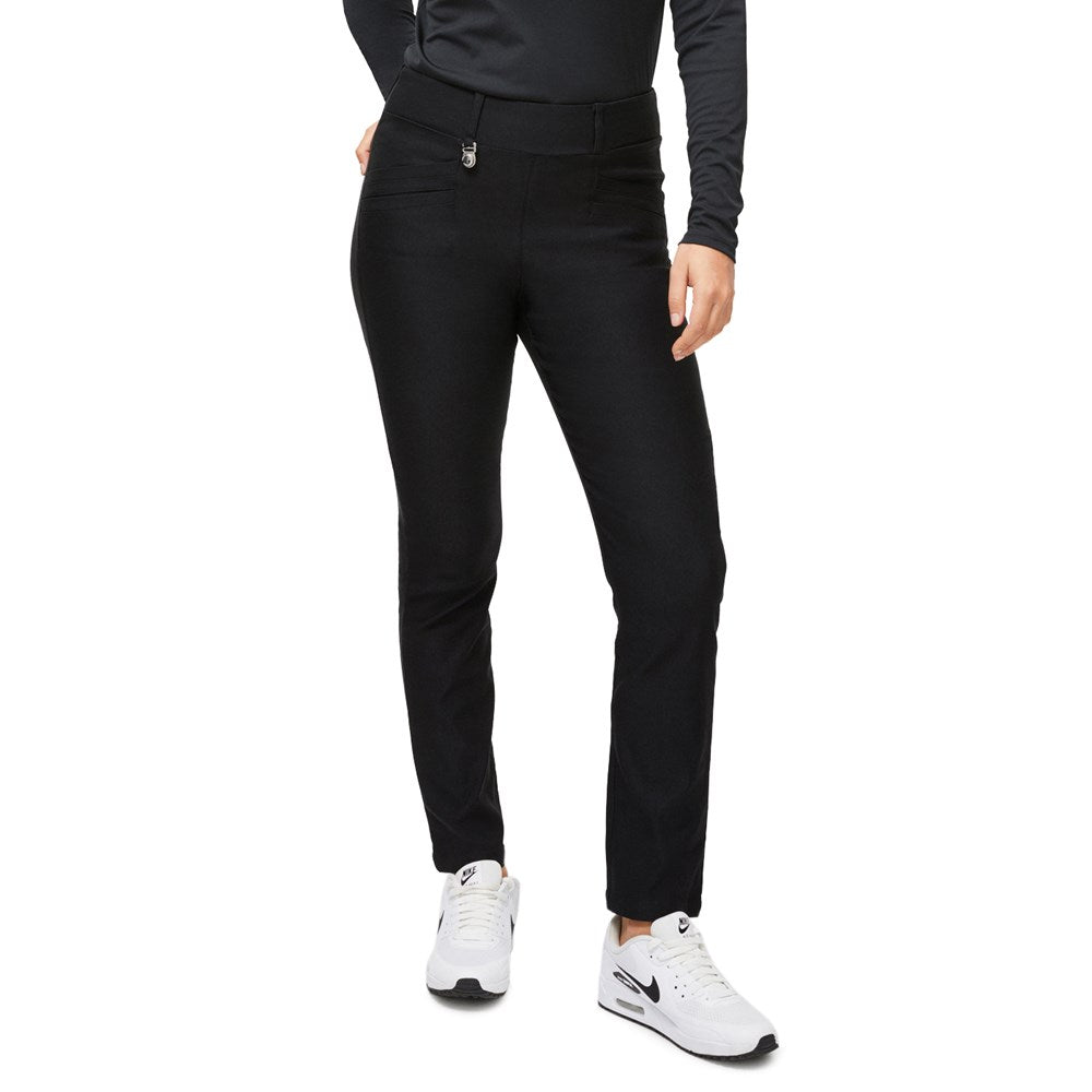 The classic Embrace is made with a two-way stretch and a firm yet comfortable fabric that embrace your curves with its glossy look. Designed with an easy pull on style and equipped with a ball marker at the waist, a useful detail at the golf course. Embrace has a slim straight fit with a high waist and an inseam measuring 76 cm in size 40. Available in the color options black, navy and dark green - all easy to match with your favorite top.