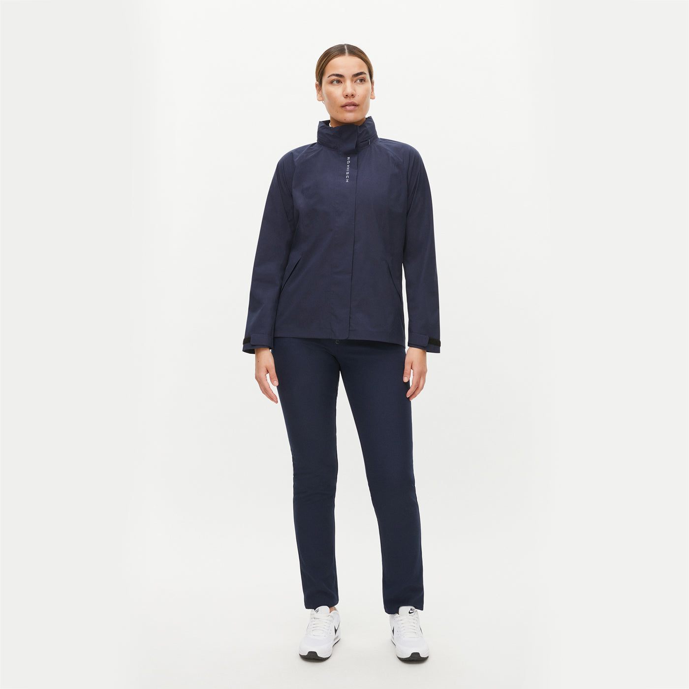 Storm rain jacket, a rain jacket with taped seams and zips for golfing in wet conditions. The rain jacket is windproof and has a waterproof rating of 10,000 water column/millimetres. The 2-way stretch offers great mobility and allows you to swing your club freely. The fabric has high breathability, which allows you to keep your tempo up. Mesh lining provides efficient moisture wicking and a comfortable feel against the skin. The jacket has a concealed hood in the collar, perfect for pulling out in when the wind and rain pick up. Suitable for anyone looking for a flexible rain jacket for both on and off the golf course. Free from fluorocarbons and has a biodegradable membrane. Comes in many colours.
