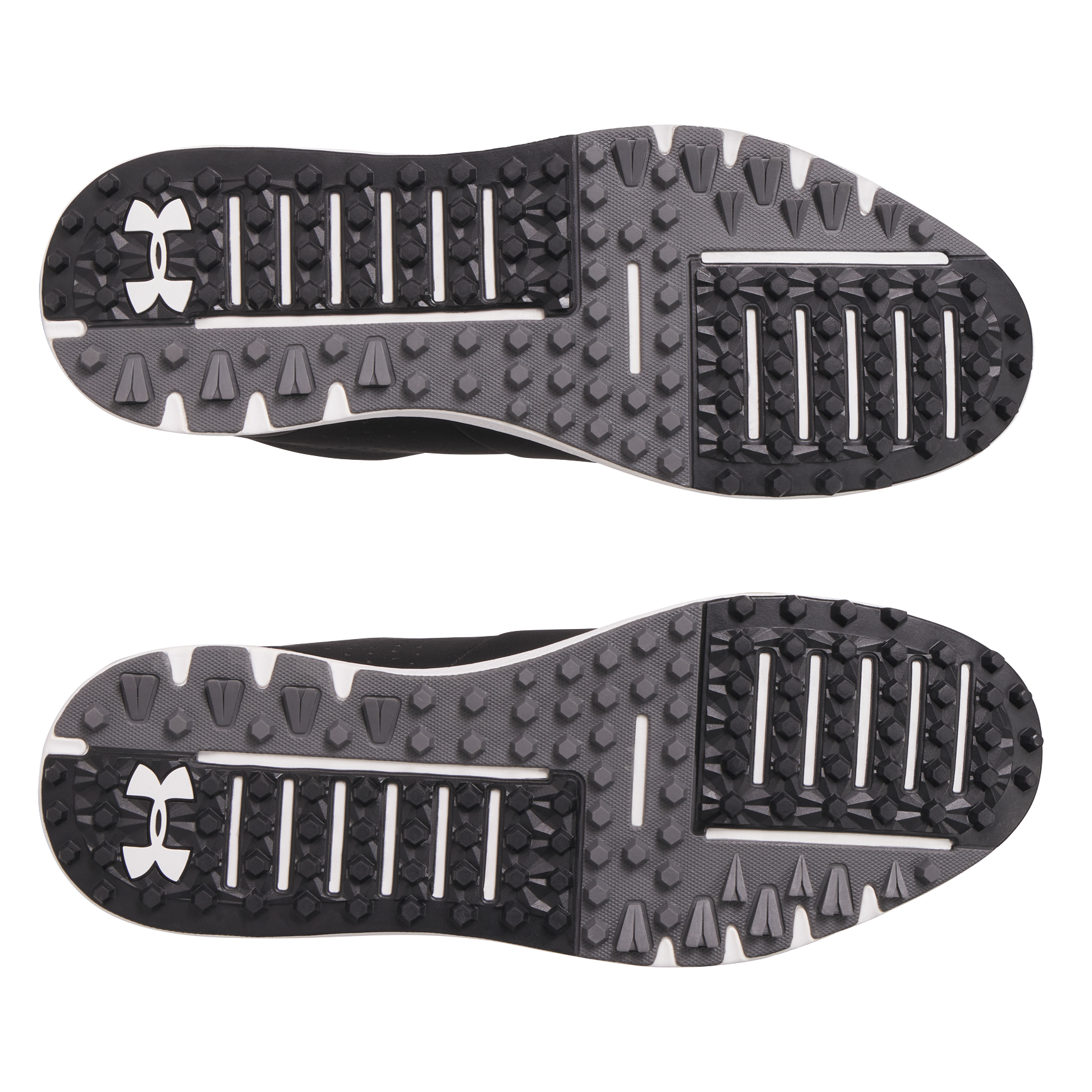 The UA Medal Spikeless Golf Shoes are crafted from a lightweight, breathable microfiber upper with water-resistant properties to help keep your feet cool and dry. The shoes feature a spikeless hybrid outsole with Rotational Resistance traction that is lighter and more flexible than a standard cleated sole, yet avoids sacrificing grip.